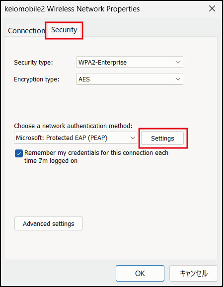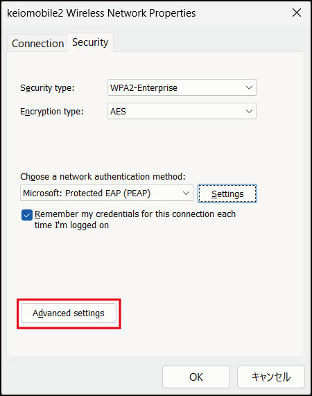 If you cannot connect to [keiomobile2] after setting, delete wireless LAN profile (keiomobile2), then restart your PC and again perform [Network setup].