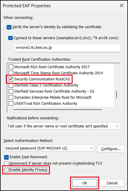 Check [Trusted Root Certification Authorities] - [Security Communication RootCA2].